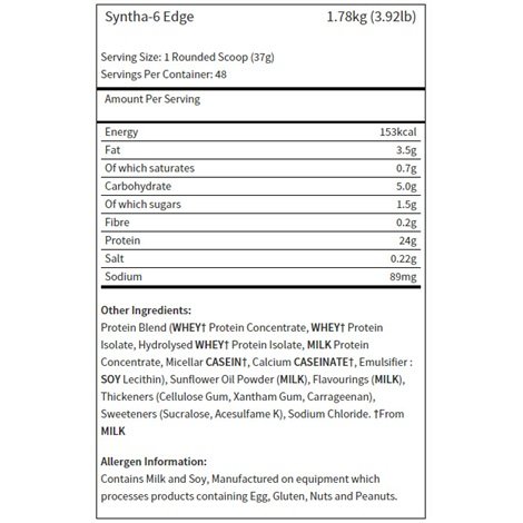 Продуктът Syntha-6 Edge от BSN осигурява всички предпоставки за натрупване на качествена мускулна маса като насърчава протеиновия синтез и стимулира бързото възстановяване на организма. В същото време протеиновото съдържание помага на тялото да се изчисти от ненужните мазнини и подпомага защитните функции на имунната система. Формулата на Syntha-6 Edge се препоръчва както за физически активния човек, така и за всеки, който желае да си осигури препоръчителния дневен прием на протеини.