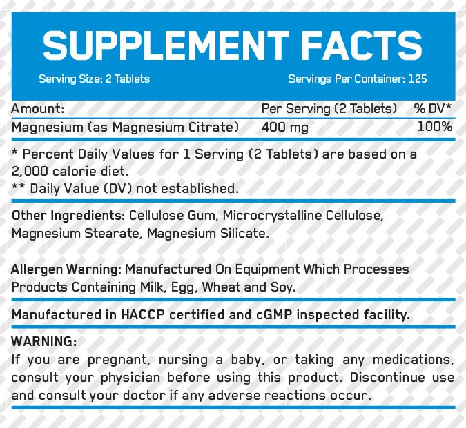 Съставки: Магнезиев Цитрат, Целулозна гума, Микрокристална целулоза, Магнезиев стеарат, Магнезиев силикат