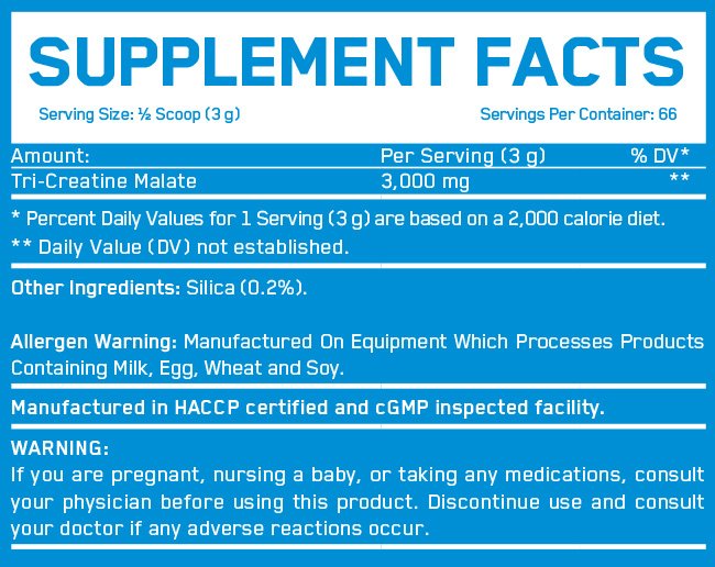 Tri-Creatine Malate 3000 от Everbuild съдържа висококачествен чист три креатин малат, който се сформира при взаимодействието на креатина с ябълчената киселина. Тя е естествена субстанция, която  участва в „цикъла на Кребс” и играе главна роля в енергопроизводството в организма.